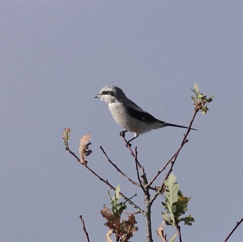 Hier ziet u een klapekster op zijn uitkijkpost, meestal in een heideveld, naar prooi speurend.