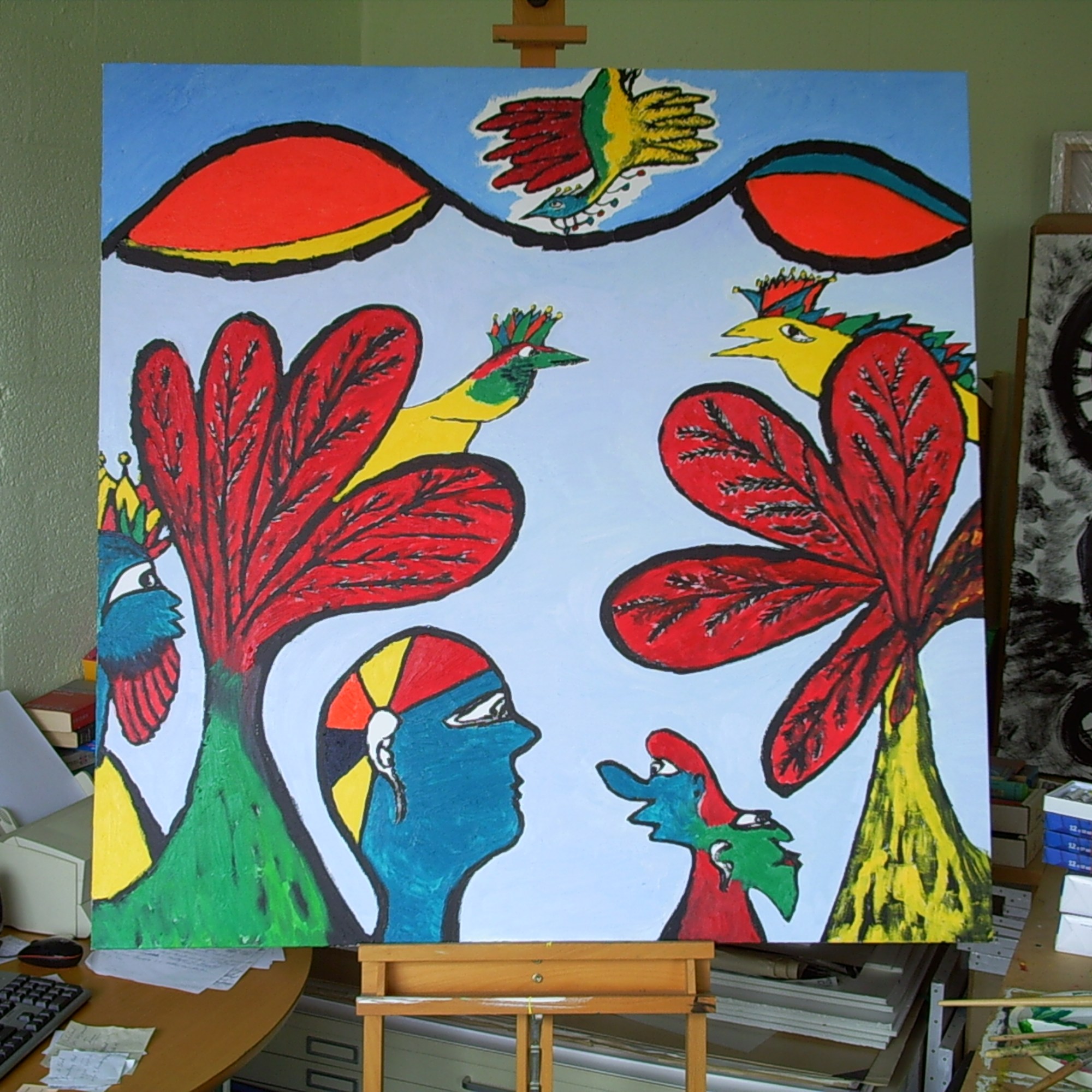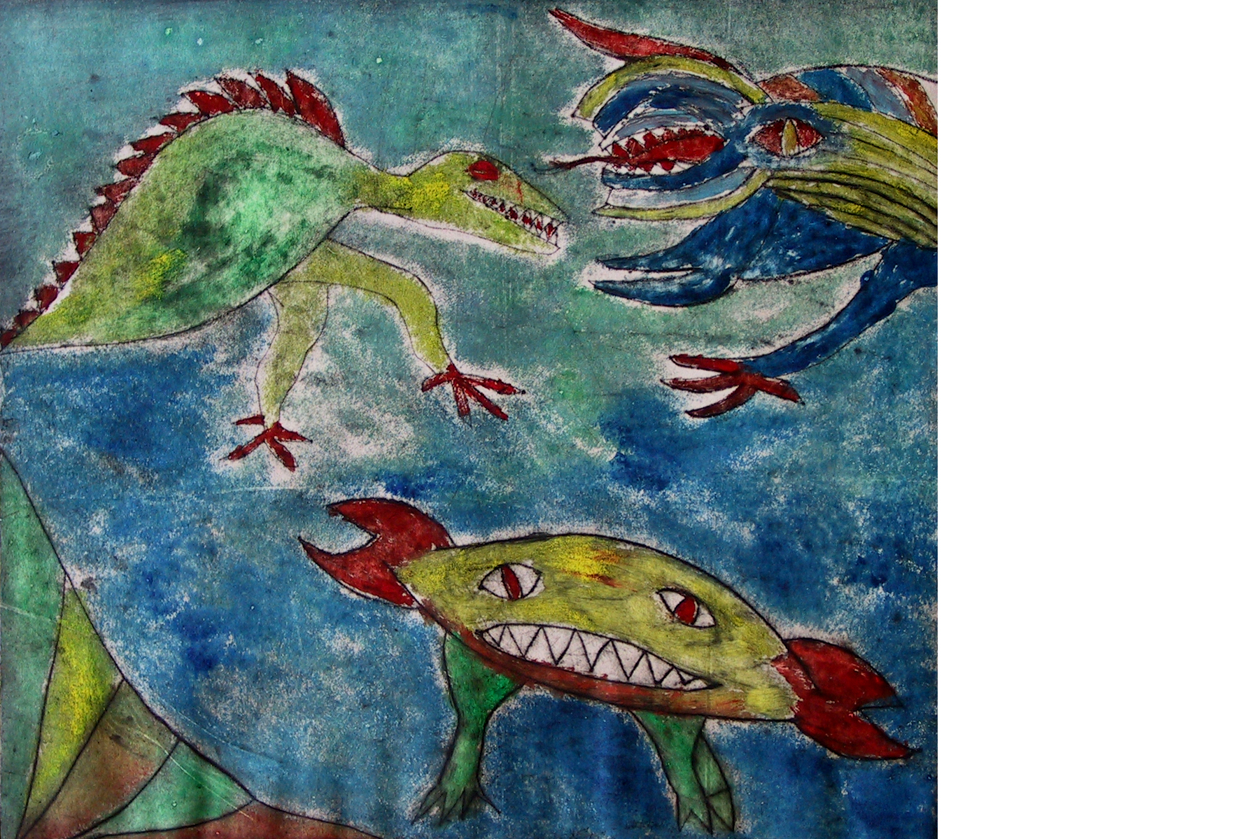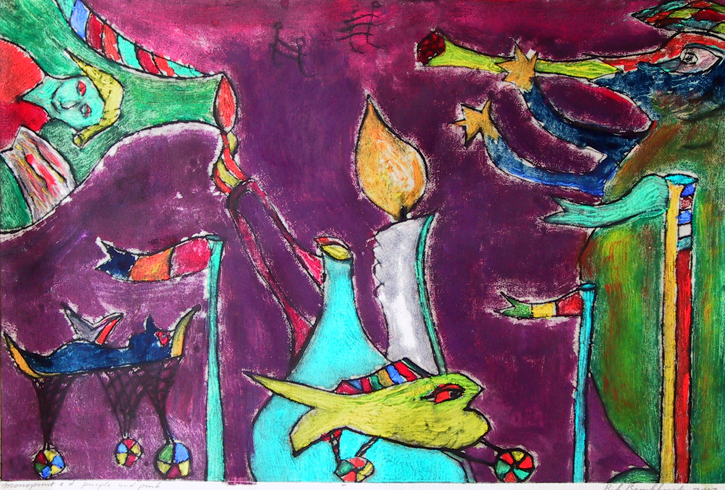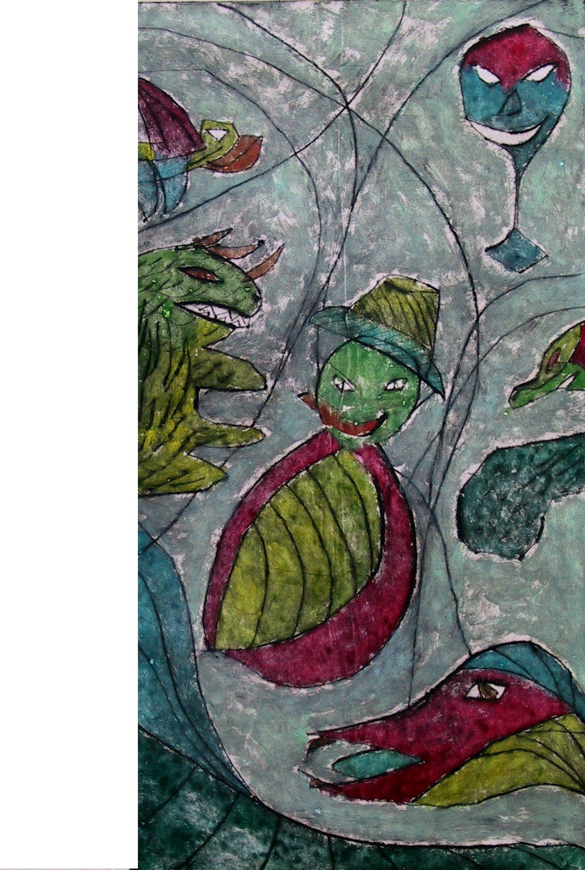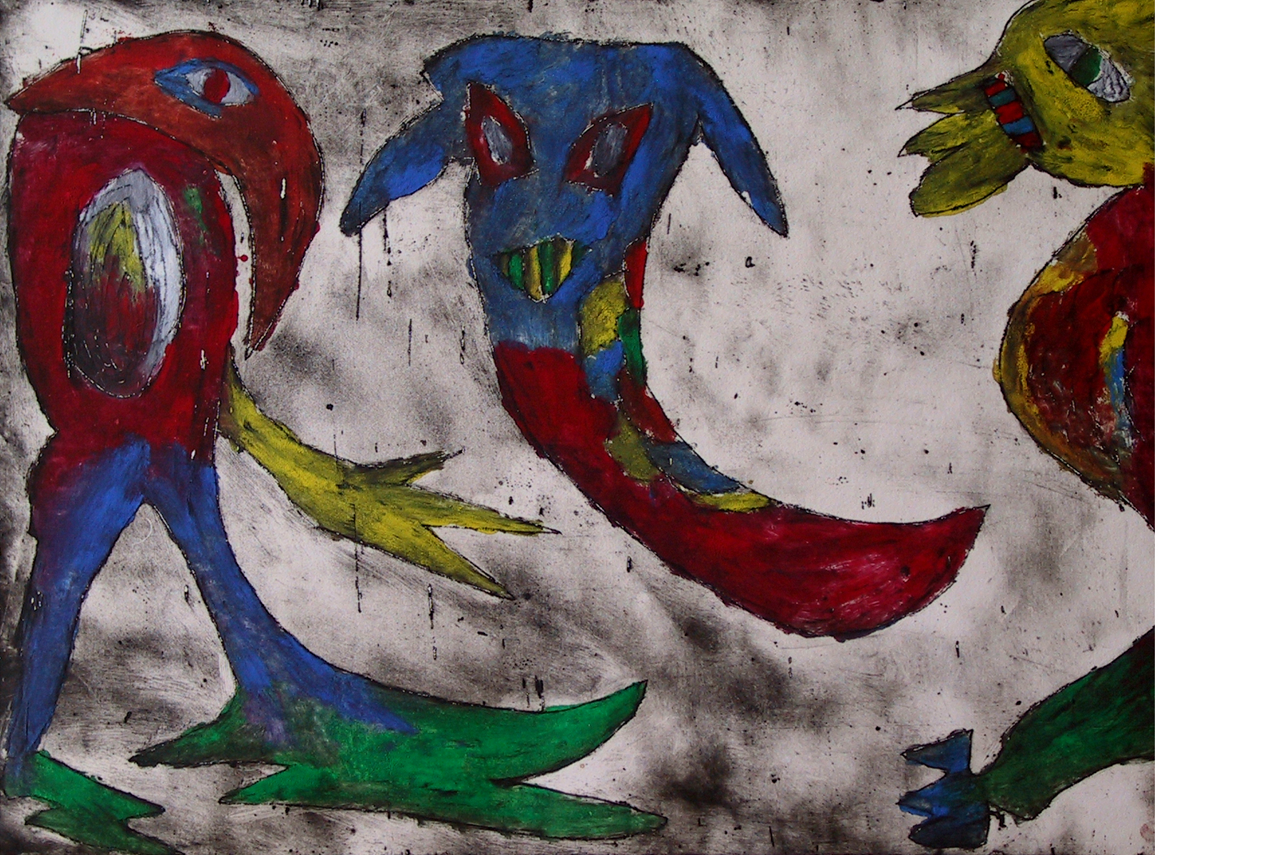 Bij de ballotage bij Pulchri Studio Den Haag is de examencommissie meerdere malen teruggekeerd om zich af te vragen ‘hoe doet ie dat toch’. Tja, dat nu is het geheim van de smid. Het grafisch vak en met name de grote etsen in kleur bereiken een fase vol magie als het werk onder de pers vandaan komt. Op het moment dat het etspapier van de plaat gescheiden wordt is dat magische moment daar. De inkt is nog nat en glimt, de kleuren spatten je tegemoet, de reuk van inkt en olieverf streelt je neusgaten. “Is het gelukt?” Ja! De schare kunstenaars in het etsatelier slaken verrukt kreetjes van bewondering. Het nieuwe kunstwerk dat de wereld aanschouwt is daar. Magie! Ik ben volslagen uitgeput en drink twee flesjes water achterelkaar leeg.