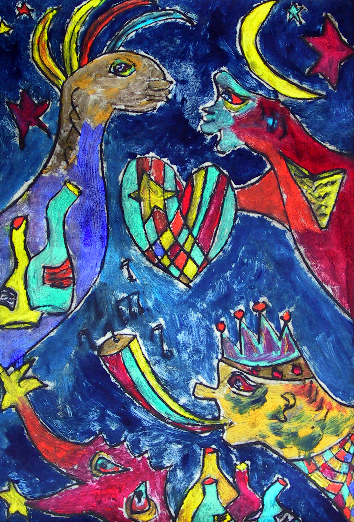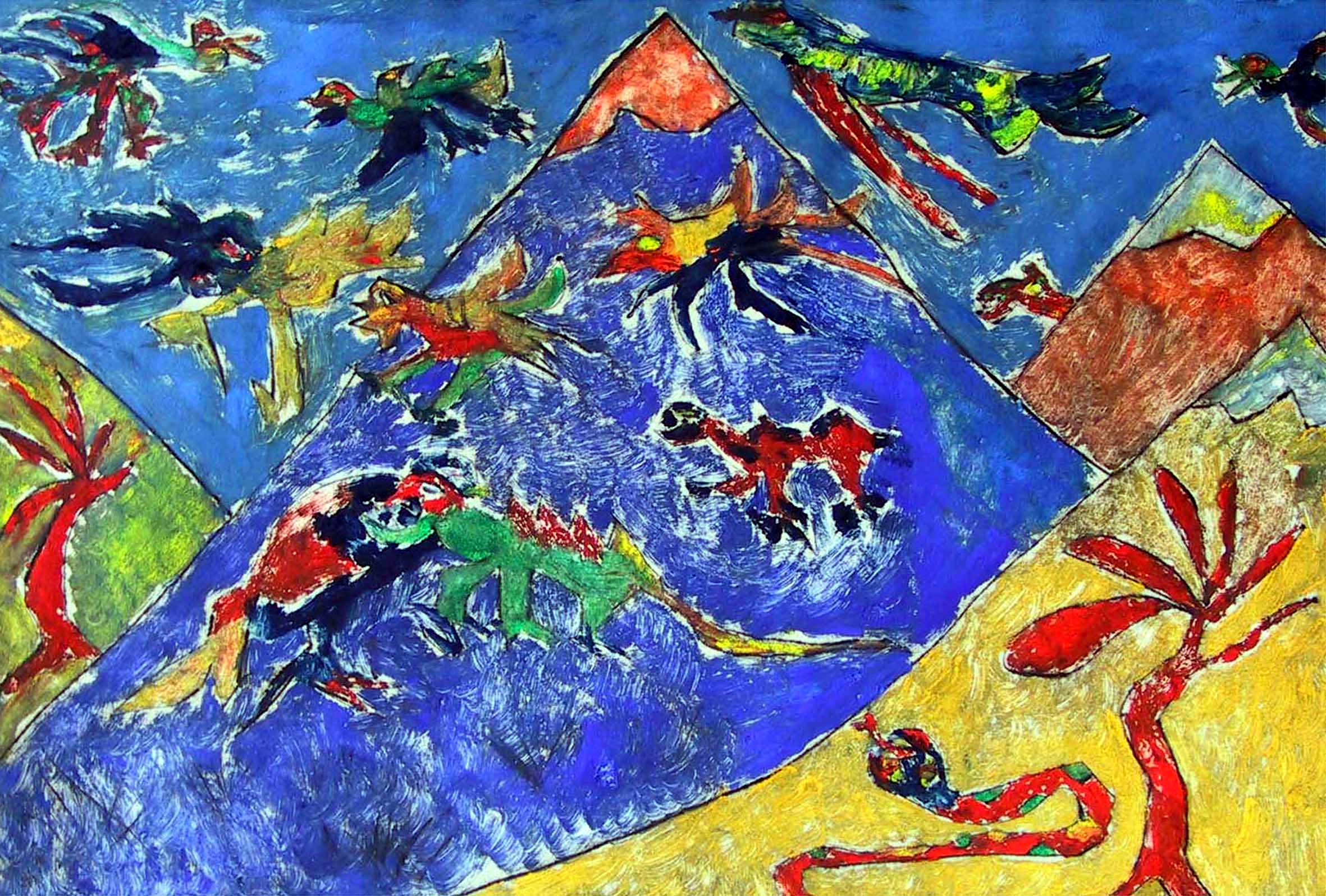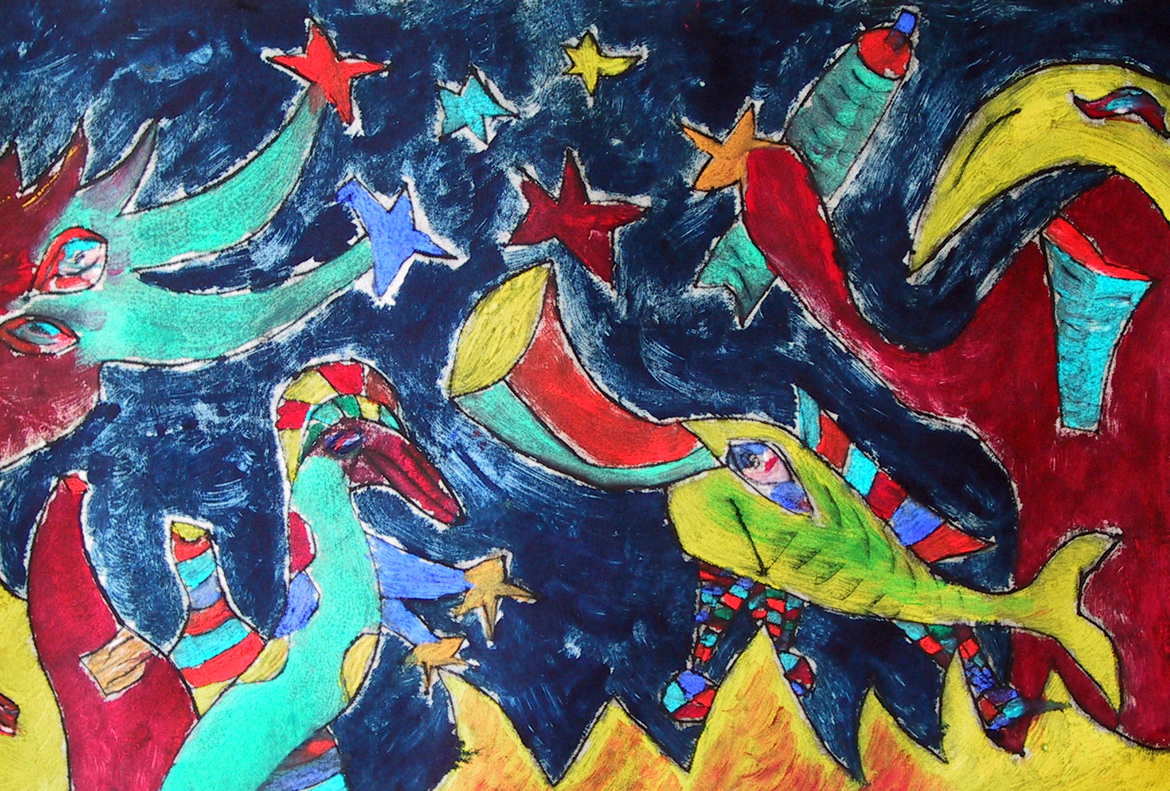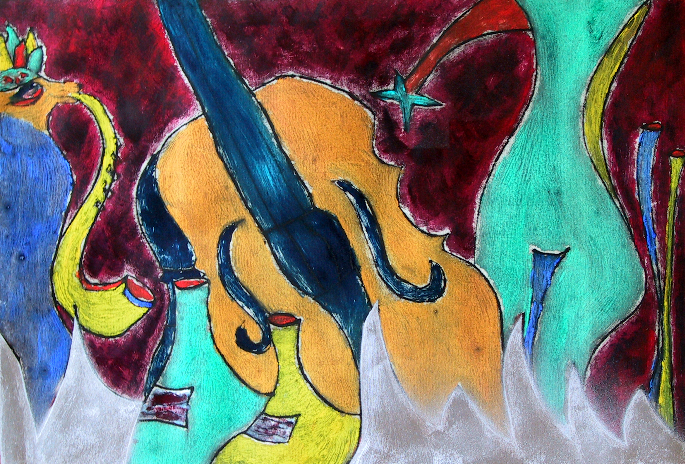 Bij de ballotage bij Pulchri Studio Den Haag is de examencommissie meerdere malen teruggekeerd om zich af te vragen ‘hoe doet ie dat toch’. Tja, dat nu is het geheim van de smid. Het grafisch vak en met name de grote etsen in kleur bereiken een fase vol magie als het werk onder de pers vandaan komt. Op het moment dat het etspapier van de plaat gescheiden wordt is dat magische moment daar. De inkt is nog nat en glimt, de kleuren spatten je tegemoet, de reuk van inkt en olieverf streelt je neusgaten. “Is het gelukt?” Ja! De schare kunstenaars in het etsatelier slaken verrukt kreetjes van bewondering. Het nieuwe kunstwerk dat de wereld aanschouwt is daar. Magie! Ik ben volslagen uitgeput en drink twee flesjes water achterelkaar leeg.